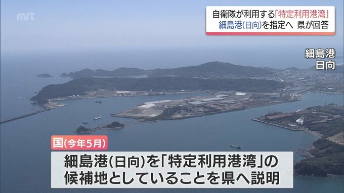 自衛隊や海上保安庁が訓練などで利用できるよう整備する「特定利用港湾」について、宮崎県は、20日、国に対して日向市の細島港の指定を受け入れると回答しました。政府は、防衛力強化の一環で、自衛隊や海上保安庁…