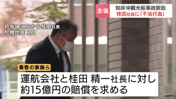 この裁判は3年前、知床半島沖で26人が死亡・行方不明となった観光船の沈没事故をめぐり乗客の家族らが運航会社と桂田精一社長に約15億円の損害賠償を求めているものです。