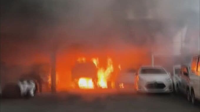 名古屋市中川区の自動車販売店で火災が発生しています。