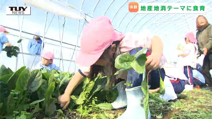 山形県天童市ではきょう、子どもたちが「地産地消」をテーマに、地元の旬の野菜"ほうれん草"の収穫を体験しました。佐藤真優アナウンサー「ハウスの中は外よりもあたたかいです。そんな中、子どもたちが腕まくり…