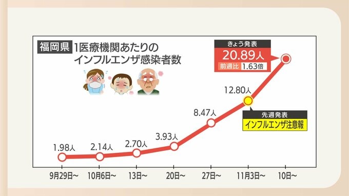 福岡市によりますと、今シーズンの学級閉鎖や学年閉鎖は昨シーズンの同じ時期と比べて、今年はおよそ7倍になっているということです。