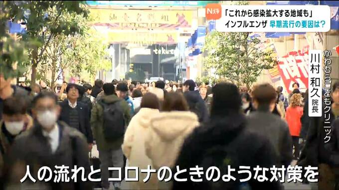 宮城県内では、インフルエンザの流行が例年よりも早い時期から急速に広がっています。