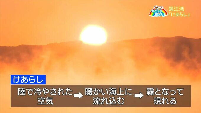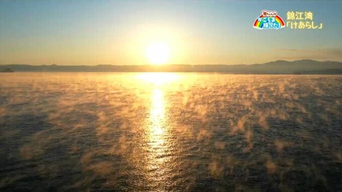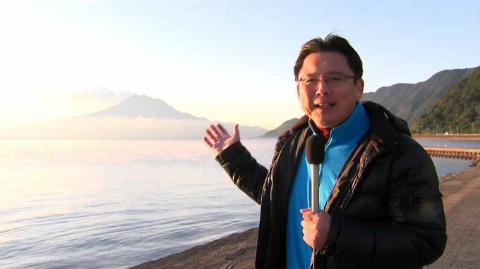 (亀田気象予報士)「手がかじかむような寒さですけれども、けあらしの上に浮かぶ桜島、格別です」