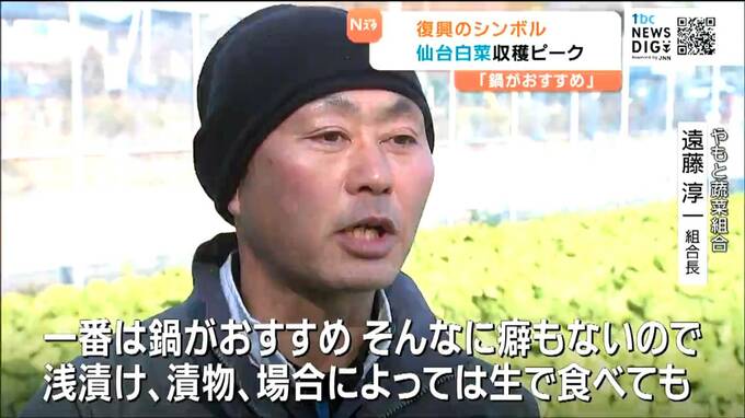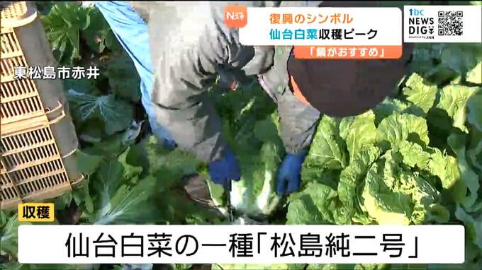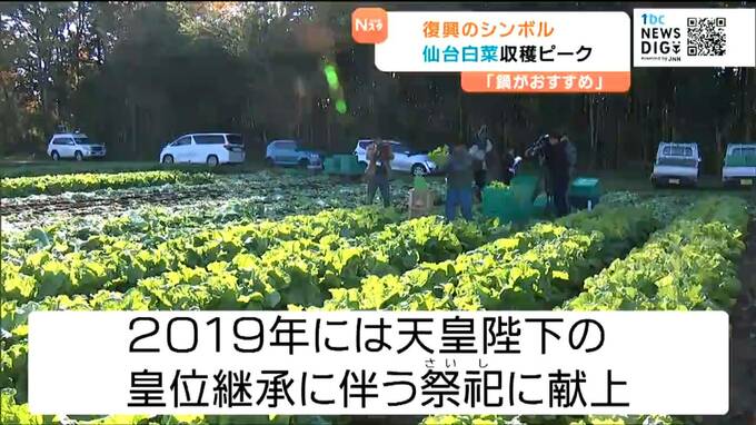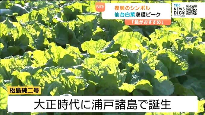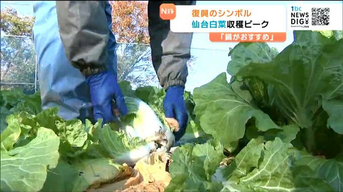 東日本大震災の後、「復興のシンボル」として栽培が始まった仙台白菜の収穫が、宮城県東松島市で最盛期を迎えています。