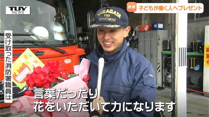 受け取った消防署職員「言葉だったり、花をいただいて力になります」