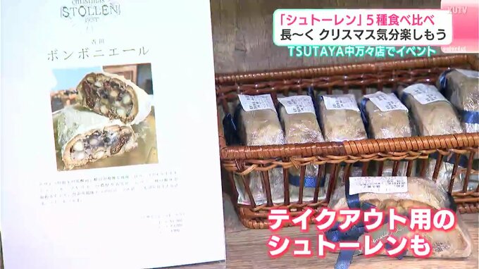 店ではテイクアウト用にもシュトーレンを販売しています。TSUTAYA中万々店は「クリスマス当日にケーキとプレゼントを楽しむ家庭も多いと思うが、シュトーレンを通して長い期間クリスマスを楽しんでほしい」としています。