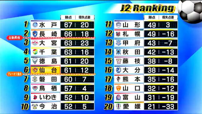 次節ベガルタが勝って7位の磐田が負ければ6位以上が確定し、昇格プレーオフ進出が決定。秋田にはベガルタサポーターが数千人来場予定。次節秋田戦は11月23日(日)、アウェーで午後2時キックオフです。