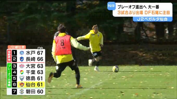 サッカーJ2・ベガルタ仙台は11月23日(日)、アウェーでブラウブリッツ秋田と対戦します。勝てばJ1昇格プレーオフ進出が決まる可能性もある大一番。若きディフェンダーが戦列に帰ってきます。