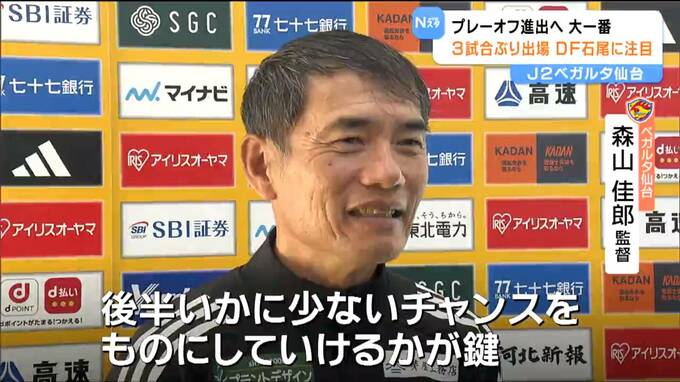 11月23日(日)、アウェー秋田戦に臨むベガルタ。残り2試合となったJ2の上位陣は大混戦。次節勝てば昇格プレーオフ進出決定、逆に負ければ一気にプレーオフ圏外へ転落する可能性もあります。対する秋田の印象を森山佳郎監督は…