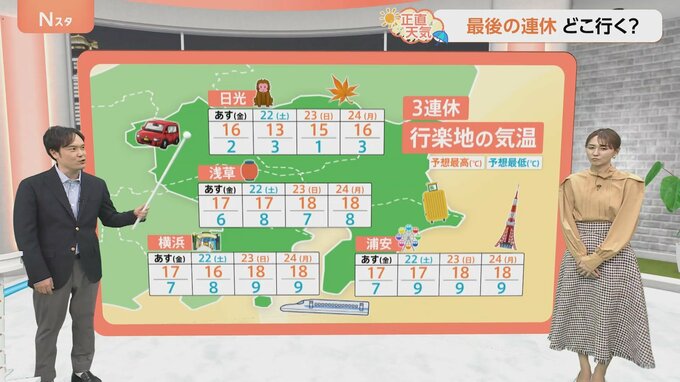 11月21日の関東の天気を山形純菜キャスター、河津真人気象予報士がお伝えします。・1か月早く関東にも冬・最後の連休どこ行く?・あすも乾燥 火の元注意