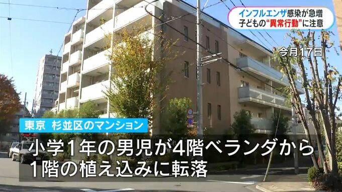 今月17日には東京・杉並区にあるマンションの4階のベランダから、小学1年の男の子が1階の植え込みに転落しました。転落した原因は不明ですが、当時、男の子はインフルエンザで発熱していたということです。