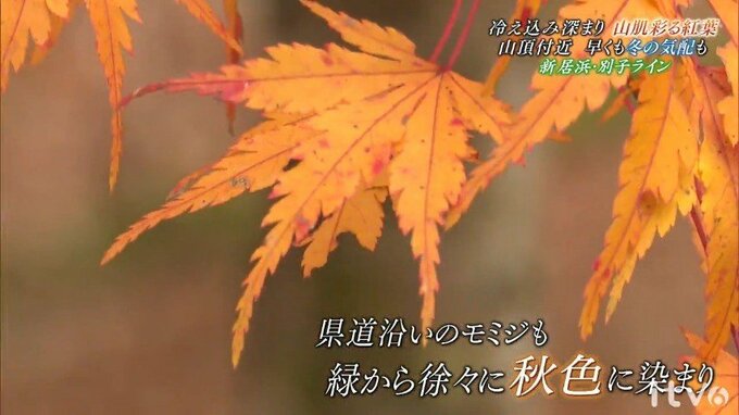 20日は久万高原町で最低気温が0.8度となるなど、県内各地で冷え込みが深まっています。新居浜市の別子山へ向かう県道沿いでは、紅葉が山肌を彩り始めています。新居浜市内の国領川上流の別子ラインでは、例年と…