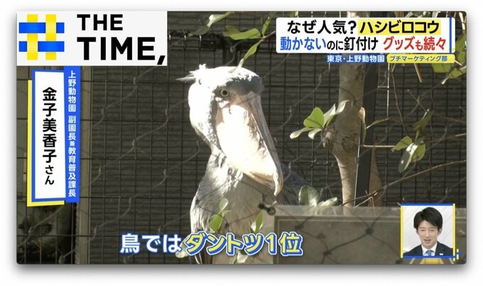 「いろんな人気動物がいるが、“ハシビロコウまっしぐら”という人もいる。鳥ではダントツ1位」