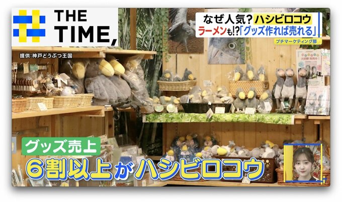 兵庫の『神戸どうぶつ王国』(神戸市)でも、グッズ売上の6割以上がハシビロコウで、飼育員が細かく監修し、鼻の位置や足の長さまでこだわりぬいているとのこと。