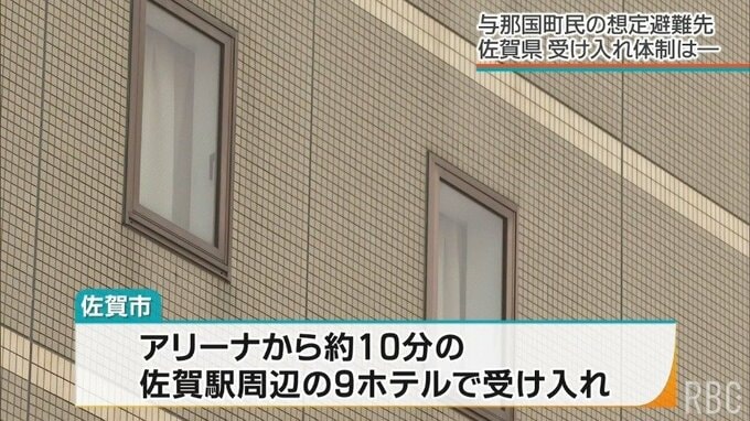 政府計画では、避難先のホテルは、全室空室が前提。佐賀市では、アリーナからおよそ10分に位置する佐賀駅周辺の9つのホテルでの受け入れを想定しています。