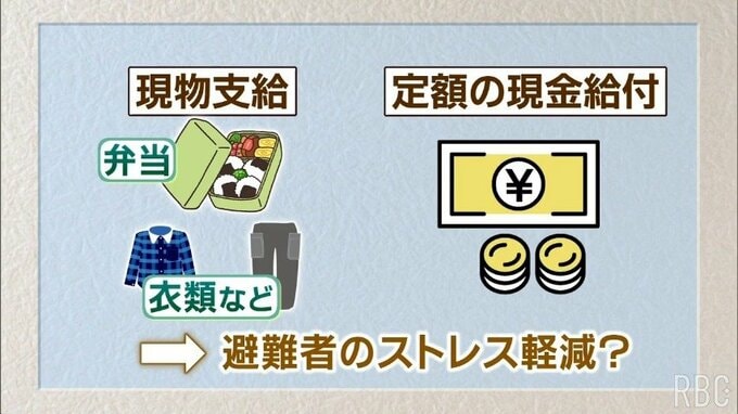 佐賀県は食事や生活必需品の提供について、現物支給ではなく定額の現金給付にし、自由に購入できる仕組みの方が、避難者のストレスも軽減できるのではないかと考えています。