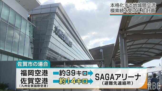 佐賀市の場合、福岡空港から避難先連絡所となるSAGAアリーナまでの直線距離がおよそ39キロなのに対し、佐賀空港(九州佐賀国際空港)からは、およそ14キロ。バスでの移動距離は短くなります。