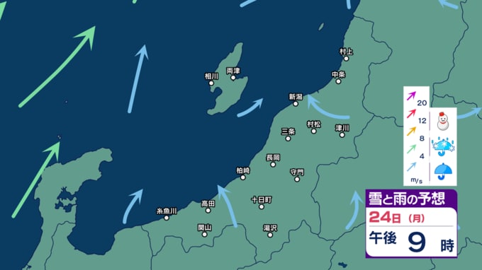 新潟県内はきょう21日夜遅くにかけて落雷や竜巻などの激しい突風、急な強い雨に注意【3時間ごとの雨雪と風のシミュレーション・21日正午更新】 新潟放送 2025年11月21日(金) 12:03 24日(月休)の雨雪と風のシミュレーション