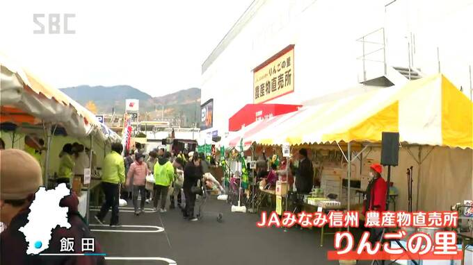 長野県飯田市の農産物直売所がリニューアルオープンし、朝から大勢の客でにぎわいました。