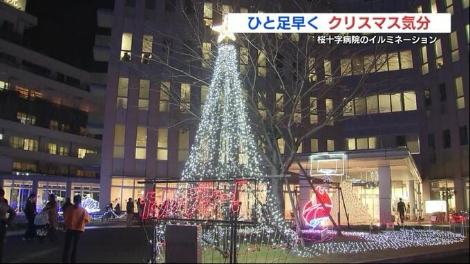 熊本市南区の病院でイルミネーションの点灯が始まり、訪れた人たちが一足早くクリスマス気分を楽しんでいます。
