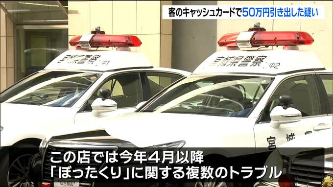 10月7日、仙台市内のガールズバーで泥酔した客のキャッシュカードを盗み、現金50万円を引き出したとして、店の責任者の男ら4人が逮捕・送検されました。
