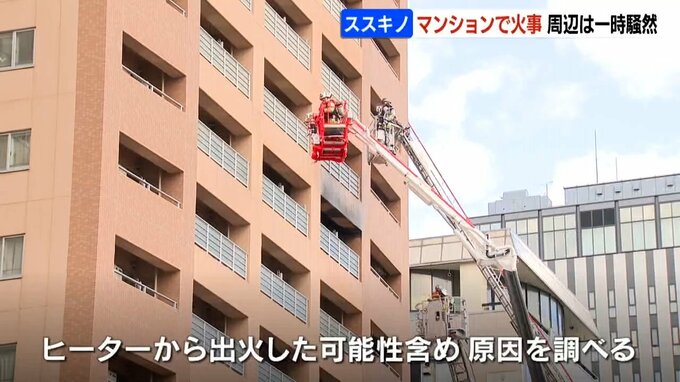 21日朝、札幌のすすきののマンションから火が出て、あたりが一時、騒然となりました。警察と消防は、室内にあったヒーターから出火した可能性を含め、原因を調べています。