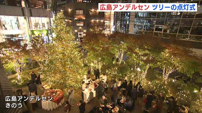 クリスマスを1か月後に控え、広島アンデルセンでは、20日、ツリーの点灯式がありました。