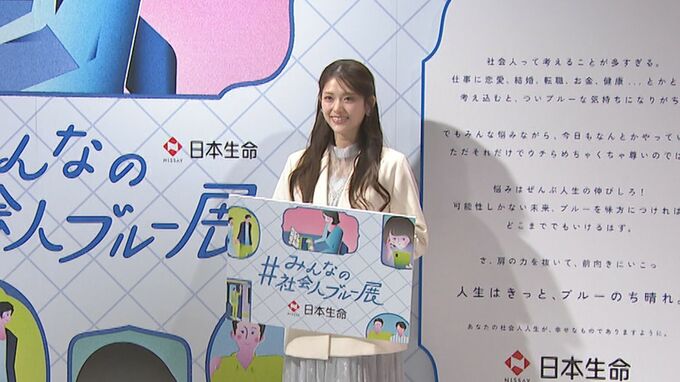 俳優・タレントの松村沙友理さんが、日本生命『#みんなの社会人ブルー展』オープニングイベントに登壇し、「社会人ブルー」アンバサダーの就任式を行いました。