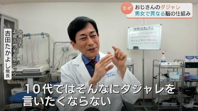 「10代ではそんなにダジャレを言いたくならない。むしろね、ダジャレなんてださいよねって感じだった人が、30歳超えて40歳50歳になってきますと、音の言葉と言葉、意味は関係ないのに音が似ているっていうだけでね、神経細胞のネットワークがくっついてくる。繋がってくるんでね」