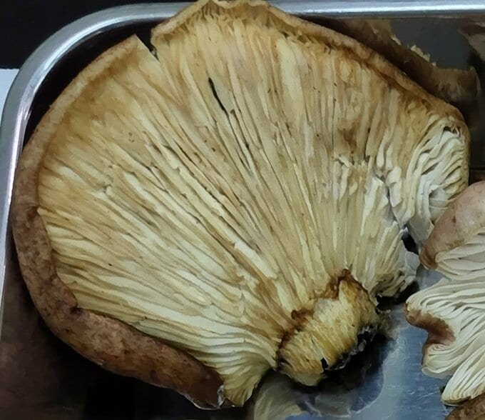 ツキヨタケは、見た目はヒラタケやシイタケ、ムキタケに似ていますが、▽ひだの付け根に隆起帯がある点 ▽肉の内部に黒っぽいシミがあるものが多い点(ただし、ないものもある)が特徴だということです。