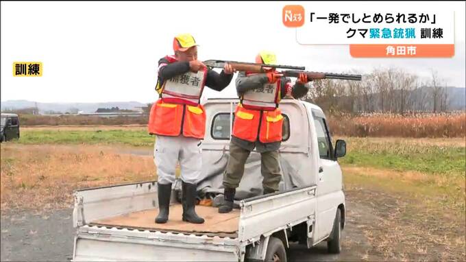 クマの出没が相次ぐなか、銃を使って駆除する「緊急銃猟」の訓練が11月21日宮城県角田市で行われ、参加者が安全に実施するための手順を確認しました。ケースの中から取り出したのは、猟銃。訓練は、住宅地にクマ1…