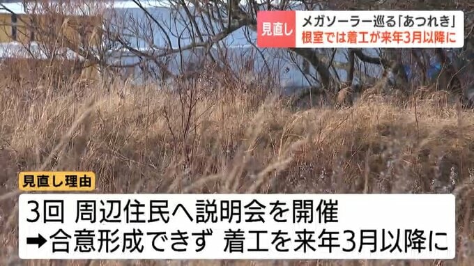 これまでに3回、周辺住民への説明会を開催したものの、住民と合意形成ができておらず、着工の時期を2026年3月以降に遅らせるということです。