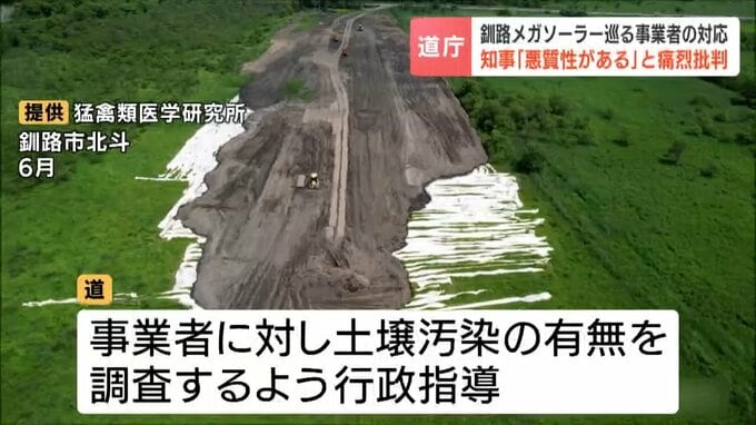 釧路市北斗で計画されているメガソーラーについて、道は事業者に対し、土壌汚染があるかどうかを確認する調査を求める行政指導を行っています。