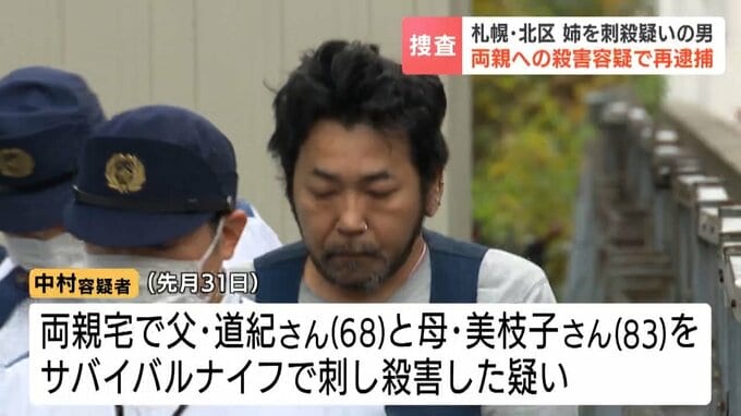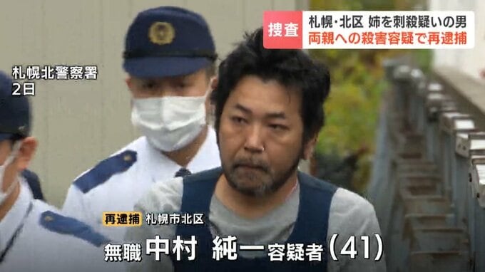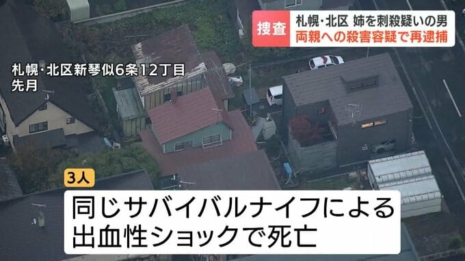 札幌市北区の住宅で姉を刃物で殺害した疑いで、41歳の男が逮捕された事件で、警察はこの男が両親も殺害したとして再逮捕しました。