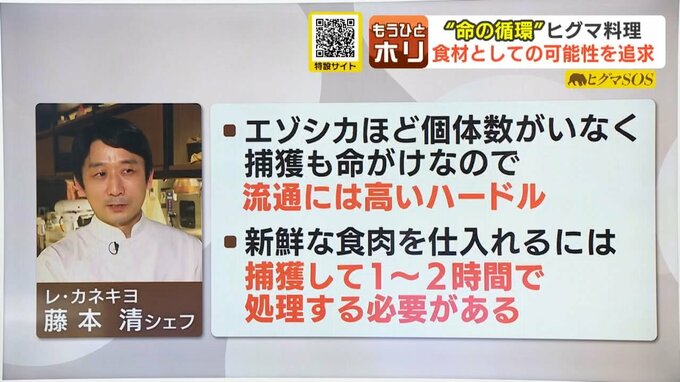 藤本シェフは、ヒグマ料理を根づかせる難しさについても話しています。