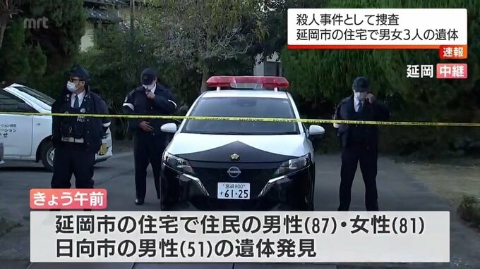 21日午前、宮崎県延岡市の住宅で80代の夫婦と50代の息子、合わせて3人の遺体が発見されました。