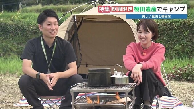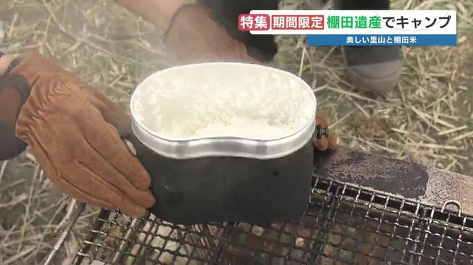 リポーター「お米のいい香り~。んー!粘り気が結構あるんですね、一粒一粒のうまみの凝縮がすごい。美味しい!満足感がすごいですね。棚田キャンプって遠い存在だったんですけど、1歩踏み出すことで、こんな楽しみがあったのかと感動しています」
