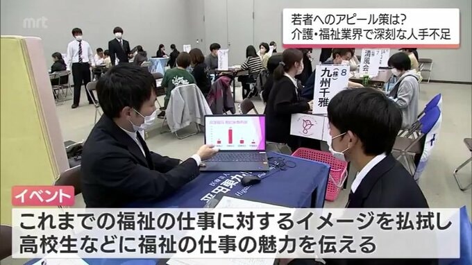 イベントでは、これまでの福祉の仕事に対するイメージを払拭しようと、高校生などに働き方や職場の雰囲気など福祉の仕事の魅力を伝えました。