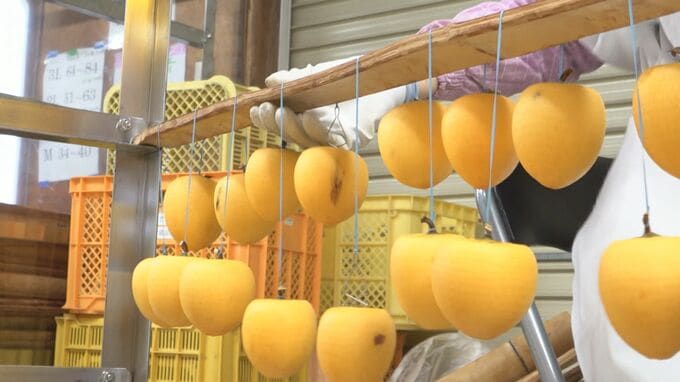 鮮やかな飴色が目を引く石川県志賀町の特産品、「ころ柿」づくりが今年も最盛期を迎えています。