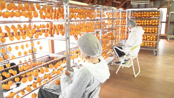 志賀町福井にある「営農福井」では、能登半島地震の影響でいまだにころ柿の生産を再開できない農家に代わり、カキの栽培やころ柿づくりを引き受けています。