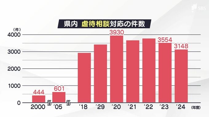 研修の背景にあるのは、虐待相談の件数の増加です。2024年度に県内7か所の児童相談所が対応した虐待の相談件数は3148件と、約20年前と比べ5倍以上となっています。