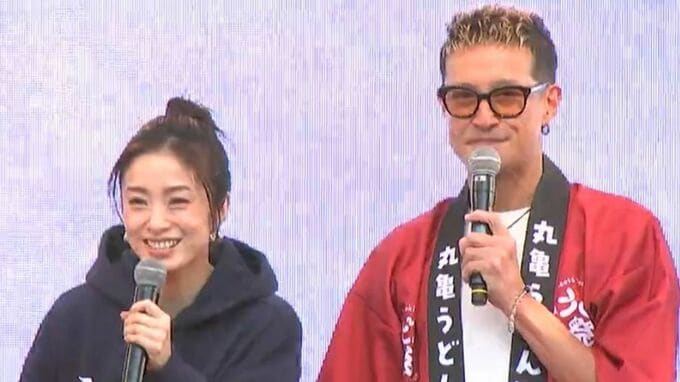 うどんチェーン大手の丸亀製麺と丸亀市などが、香川のうどん文化を全国に発信しようとイベントを開きました。丸亀城の芝生広場で開かれたイベントです。丸亀製麺のアンバサダー、上戸彩さんも登場。集まった人たち…