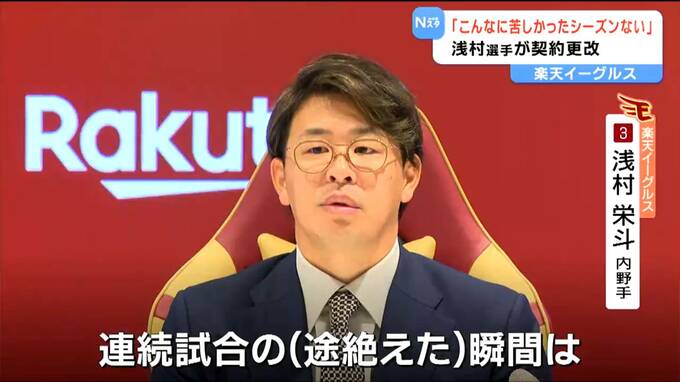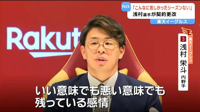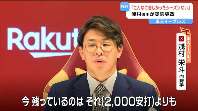 プロ野球・東北楽天ゴールデンイーグルスの浅村栄斗選手が契約更改に臨みました。プロ17年目のシーズンを振り返りその胸中を語りました。