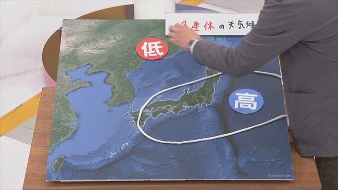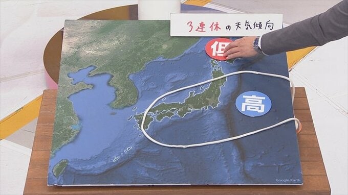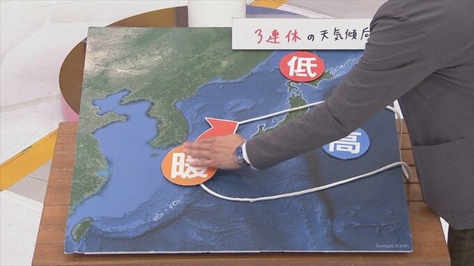 つまり暖かい空気がどんどん南から流れ込みやすくなりますので、3連休は基本的には天気の崩れはなし。