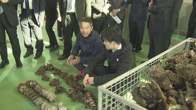 19日、鈴木農林水産大臣が視察に訪れ、被害状況を確認し、養殖関係者と意見交換しました。