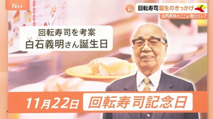 11月22日は「回転寿司記念日」です。由来は回転寿司を考案した白石義明さんの誕生日だからということです。