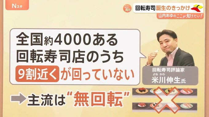 回転寿司評論家の米川伸生さんによると「全国約4000ある回転寿司店のうち、9割近くが回ってない」と言います。なんと、主流は“無回転”だというのです。