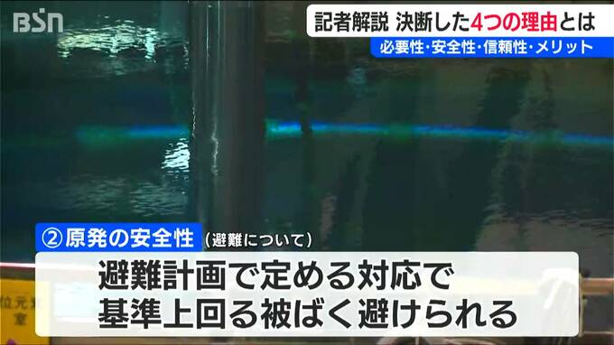 また事故が起きた際の“避難の安全性”については、避難計画で定める対応が行われれば、基準を上回る被ばくを避けることができると見込まれることが示されたことを理由に挙げています。