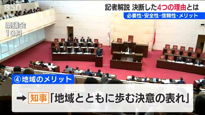 東京電力は9月の県議会で、新潟県経済の活性化などのために10年間で1000億円規模の資金拠出を行うとともに、県内産業の振興や雇用の創出に取り組むと表明しています。花角新潟県知事はこれについて「地域とともに歩む決意の表れ」だとし、再稼働容認の理由の1つとしました。