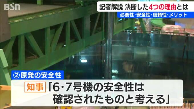 原子力規制委員会や新潟県独自の検証委員会の結論をもとに花角英世新潟県知事は、「6号機、7号機の安全性は確認されたものと考える」としました。